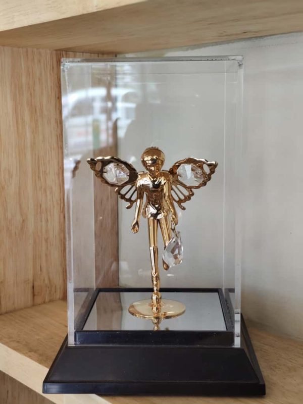 Exquisite Gold-Plated Fairy Figurine with Crystal-Studded Wings and Sparkling Crystal Gem, Elegantly Encased in Transparent Acrylic Display Box – Premium Decorative Showpiece and Collectible Gift Item